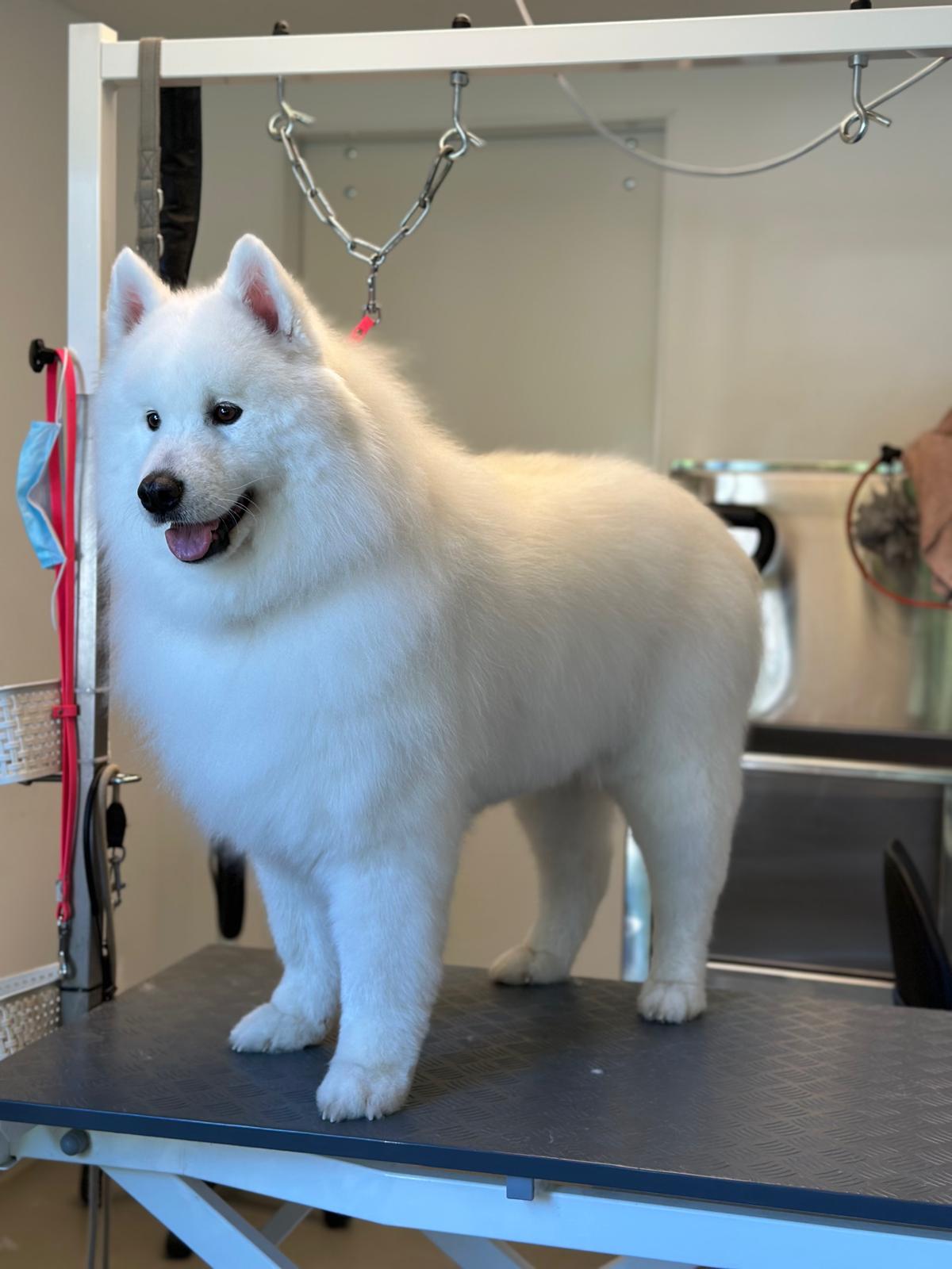 Deze Samojeed is een ras, behorend tot de pool- en keeshonden die haar naam dankt aan het volk waarbij hij is ontdekt, de Samojeden. Het volk noemde de honden “Bjelkiers”, wat ‘witte hond’ betekent. Er zit wel een beetje werk aan, dat dan weer wel.